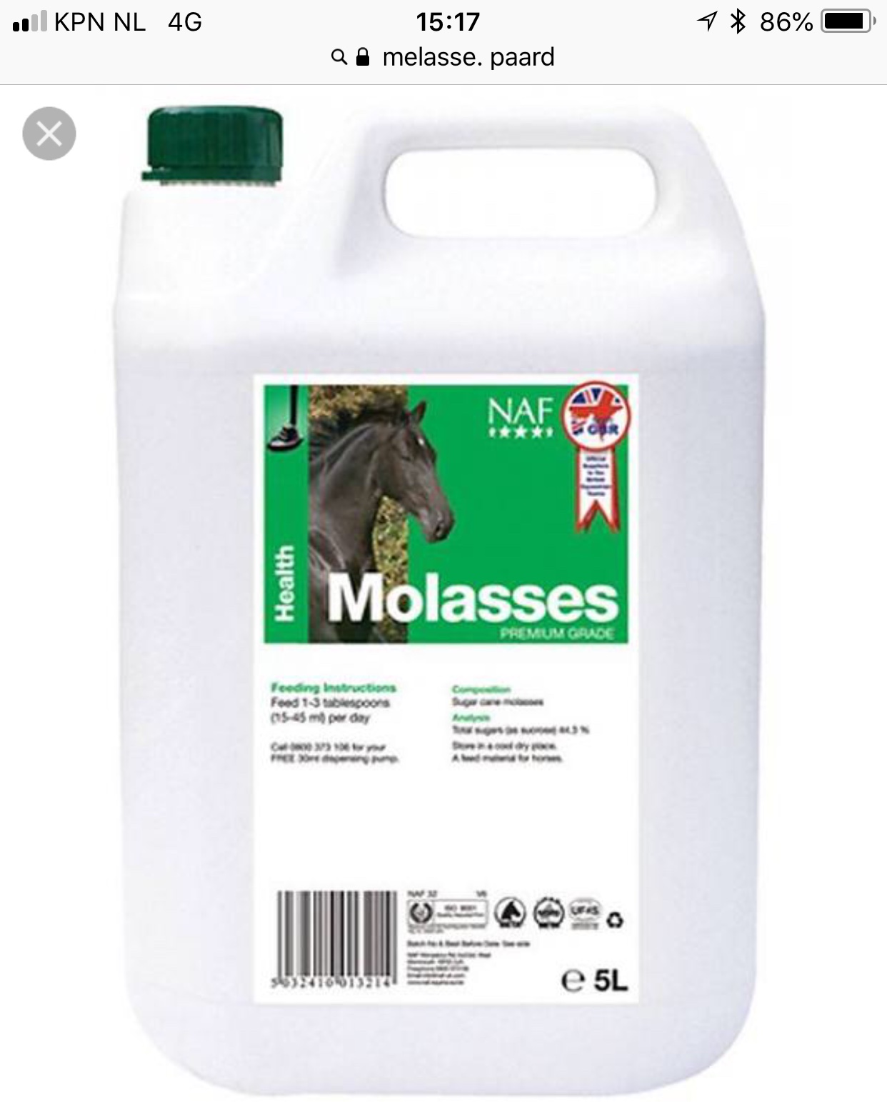 De NAF molasse bevat volgens het etiket 44,3% suikers