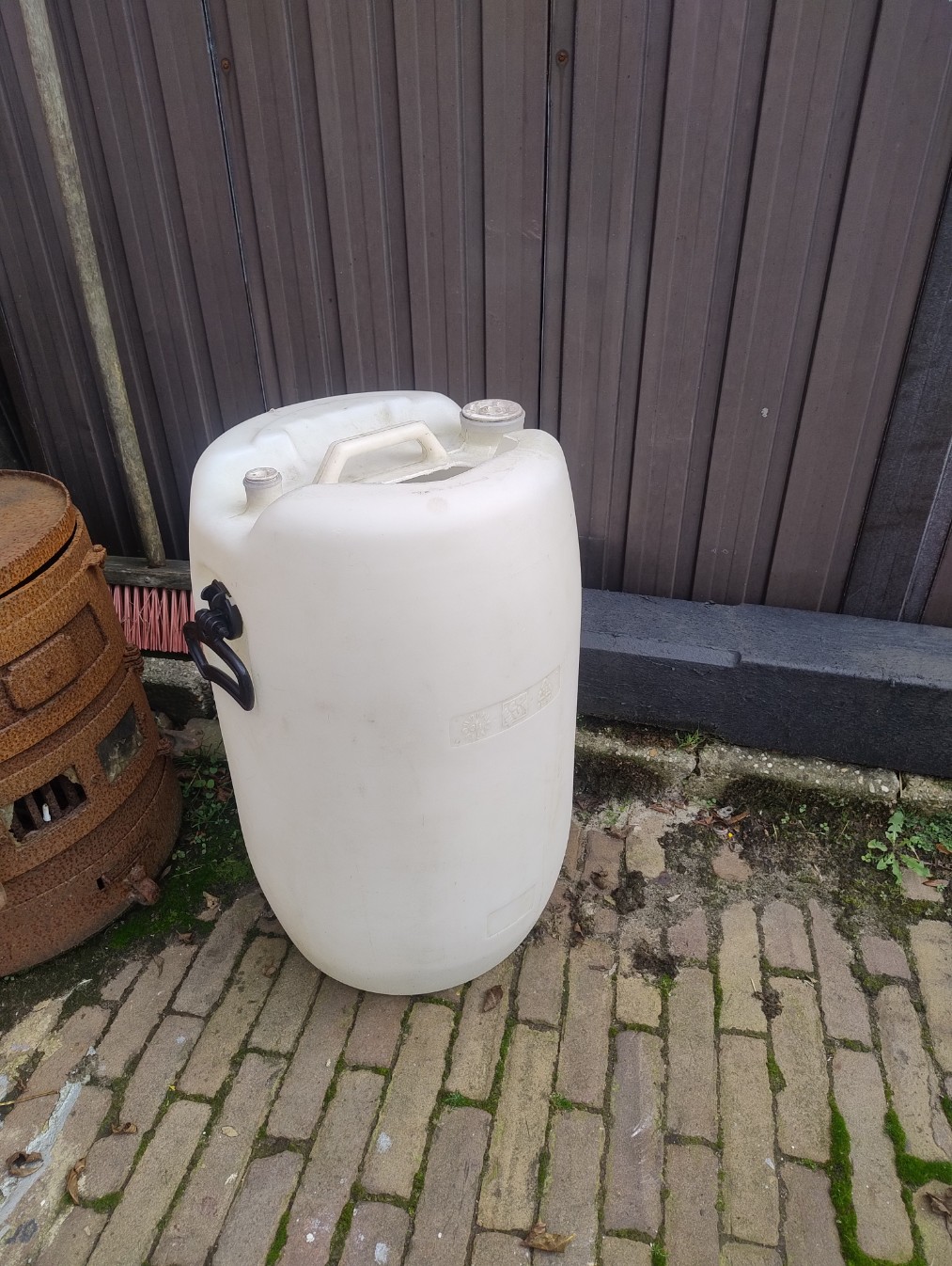 Voor stook van 5 tot 30 liter een vat water als op foto voldoende. 60 l . Voor een gehele run. Eind temp water zit dan op rond 35 gr.